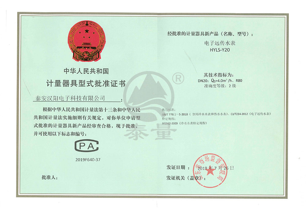 IC卡冷水水表型評(píng)證書(shū)