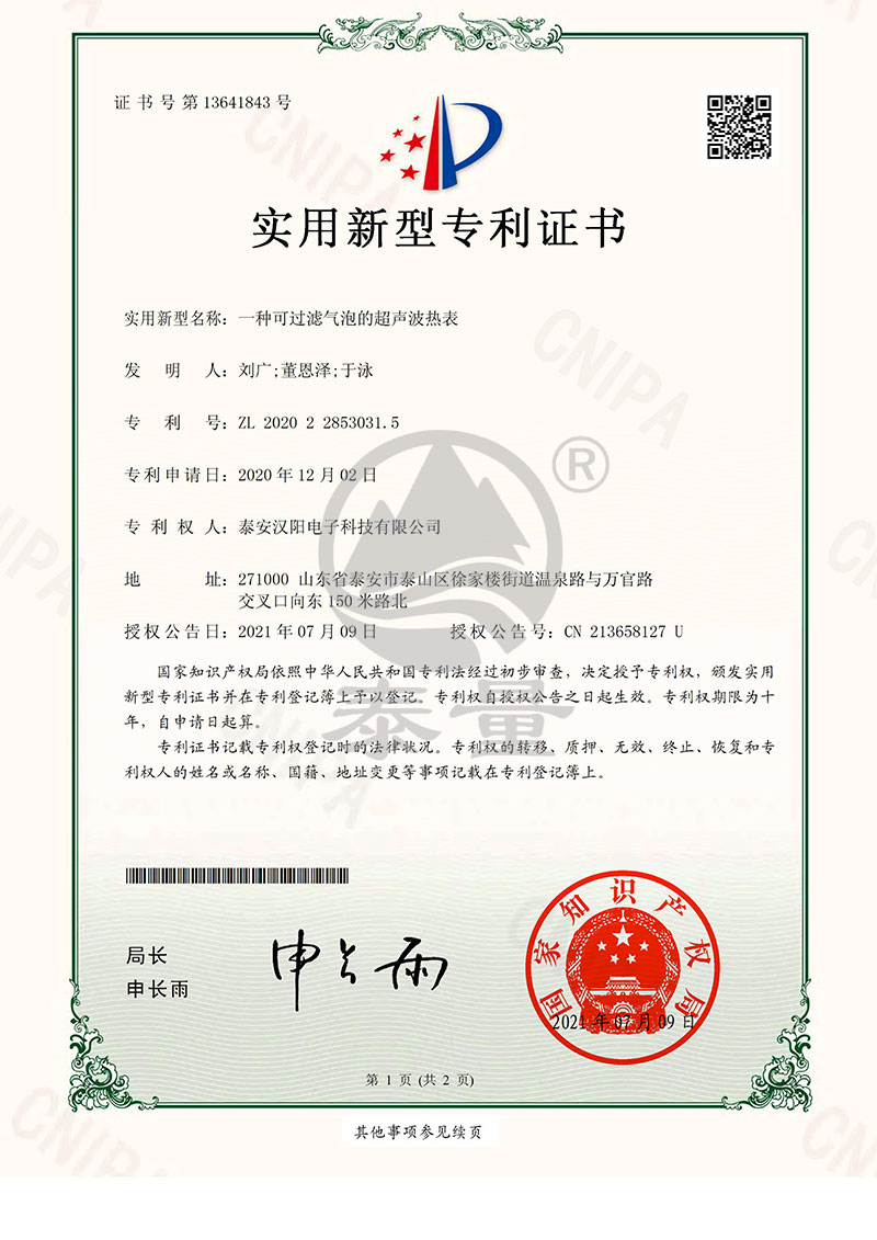 FZ20-548一種可過(guò)濾氣泡的超聲波熱表-證書