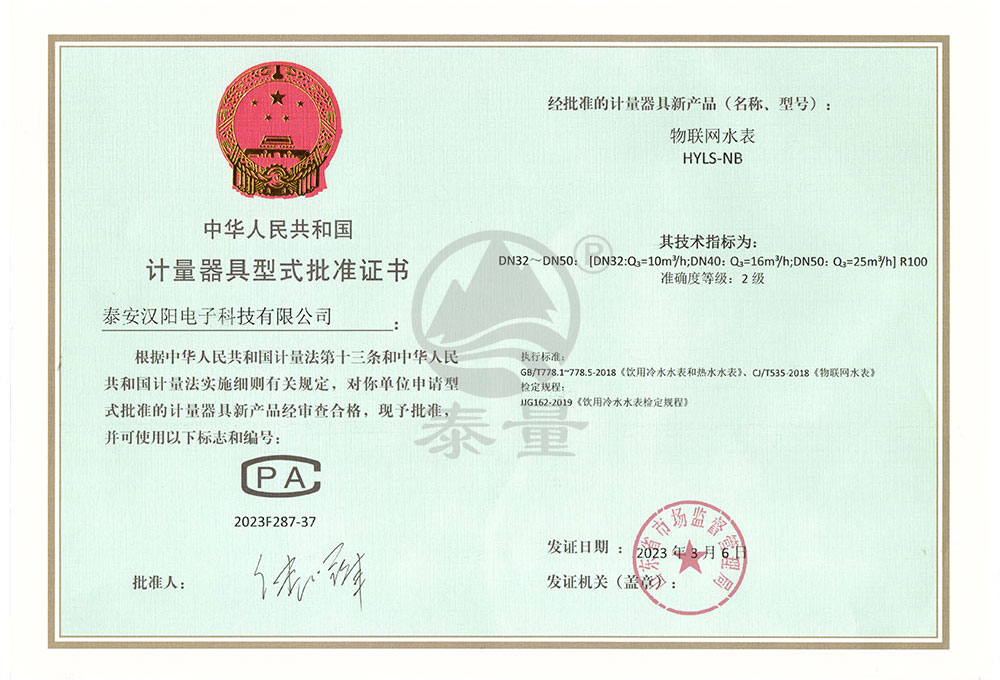 物聯(lián)網(wǎng)水表型評(píng)證書(shū)32-50